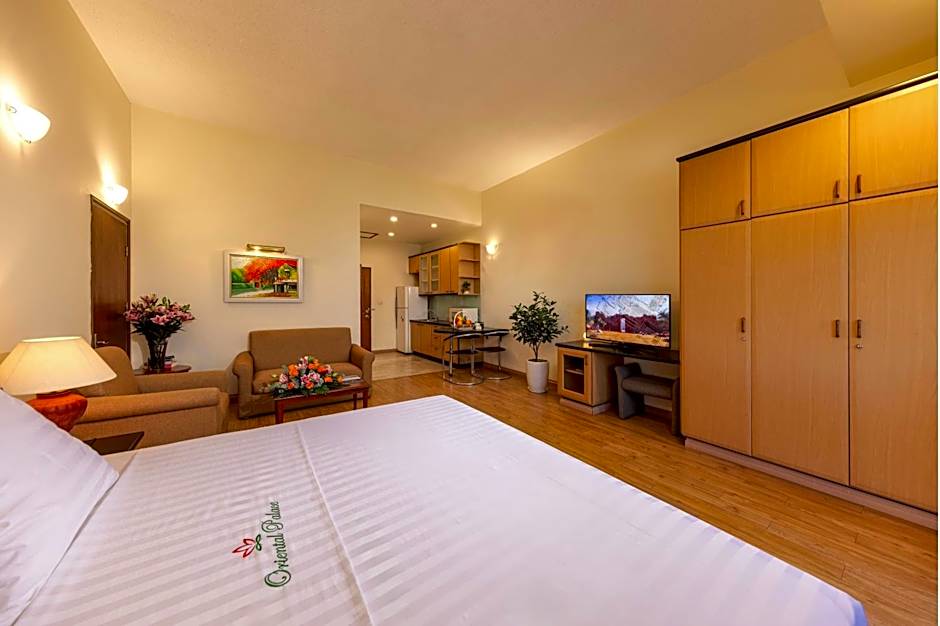 The spacious suite features air conditioning, a seating area, a balcony with garden views as well as a private bathroom boasting a bath.